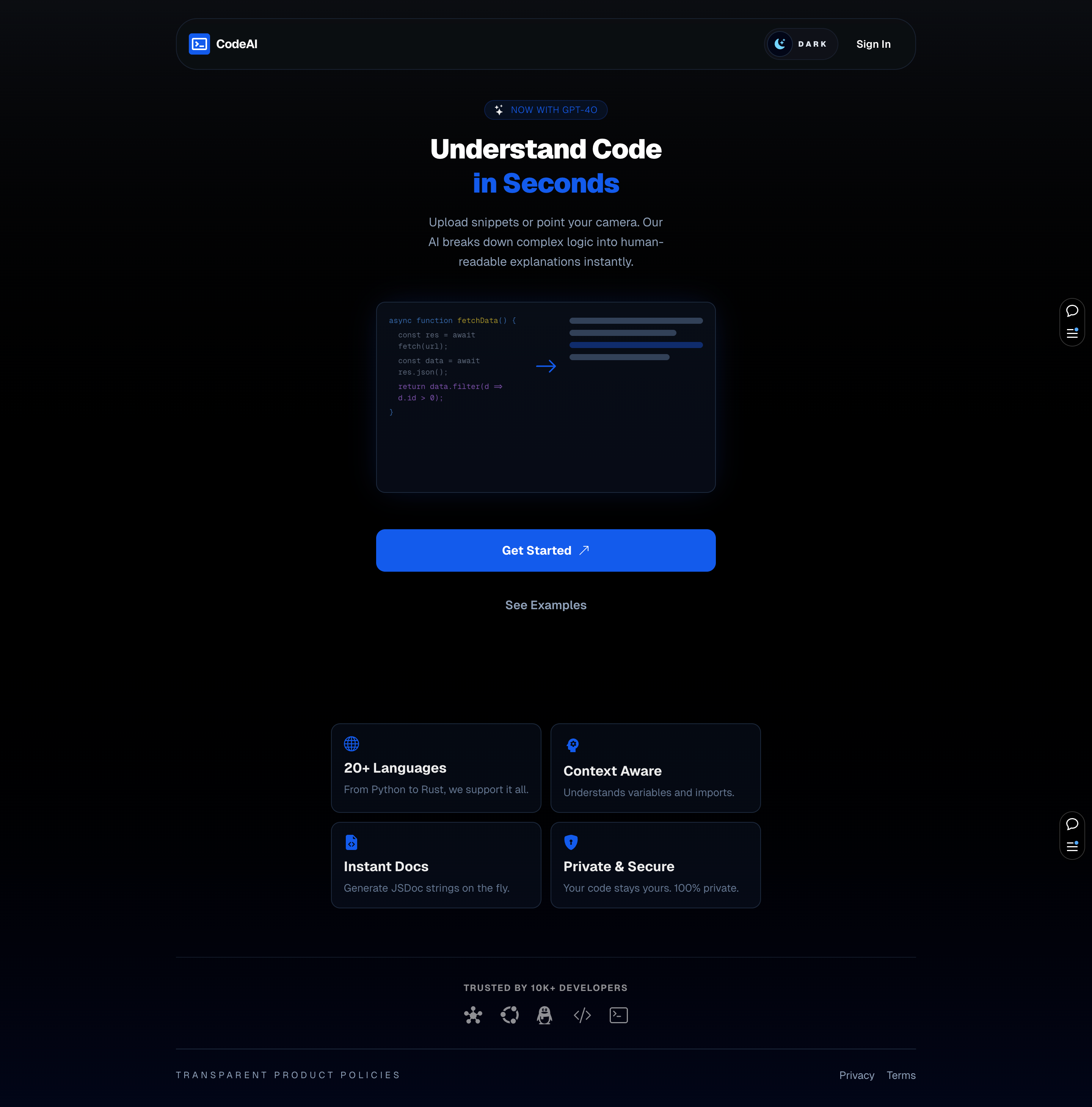 CodeAI helps developers understand code faster with clear AI explanations, social sign-in, and saved analysis history.